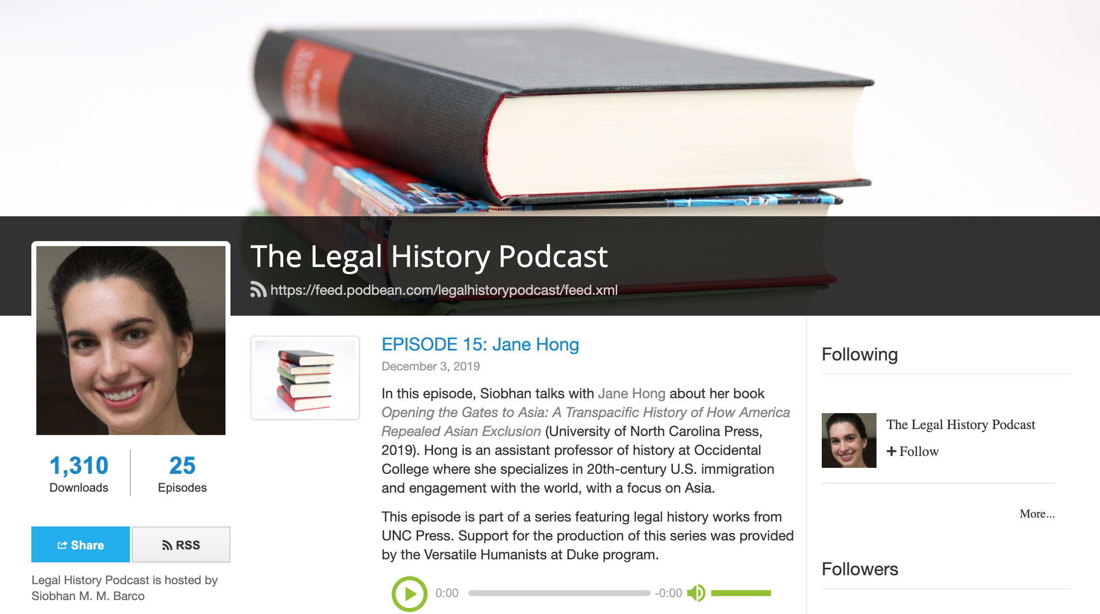 Listen to Jane Hong’s podcast interview with Siobhan Barco of the New Books Network: Legal History